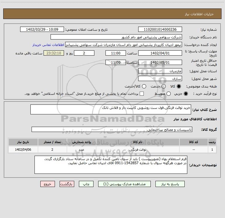 | 1 | -- | توالت فرنگی | عدد | 2 | 1402/04/06 |