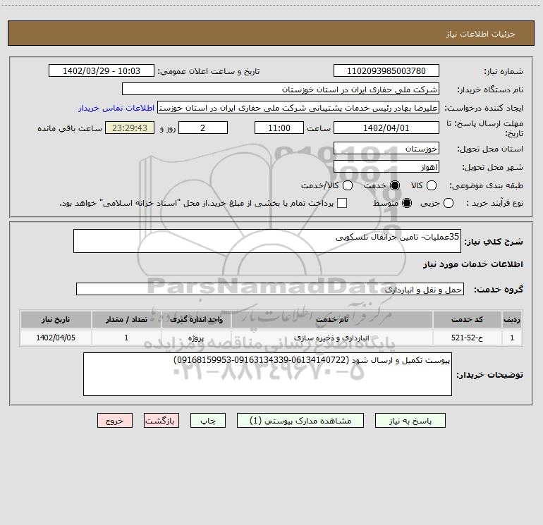 شرح کلی نیاز: 35عملیات- تامین جراثقال تلسکوپی
