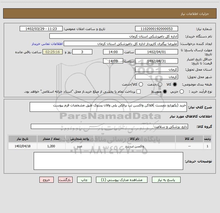 نام دستگاه خریدار:اداره کل دامپزشکی استان کرمان