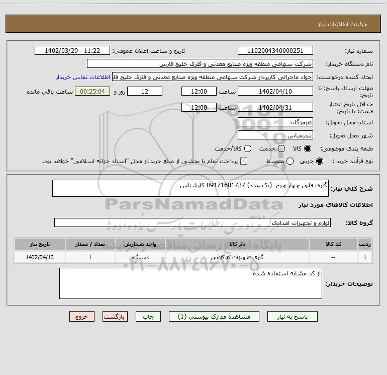 نام دستگاه خریدار:شرکت سهامی منطقه ویژه صنایع معدنی و فلزی خلیج فارس