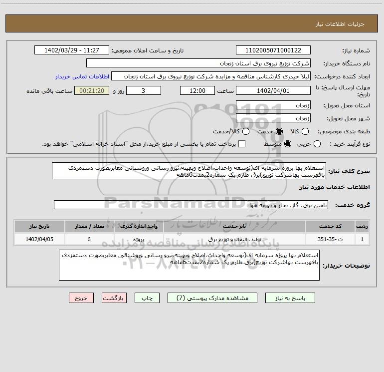 نام دستگاه خریدار:شرکت توزیع نیروی برق استان زنجان