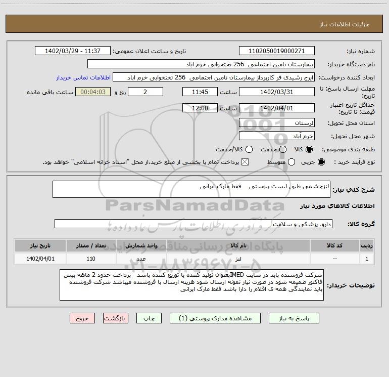 شرح کلی نیاز: لنزچشمی طبق لیست پیوستی فقط مارک ایرانی