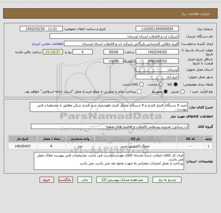 نام دستگاه خریدار:شرکت اب و فاضلاب استان لرستان