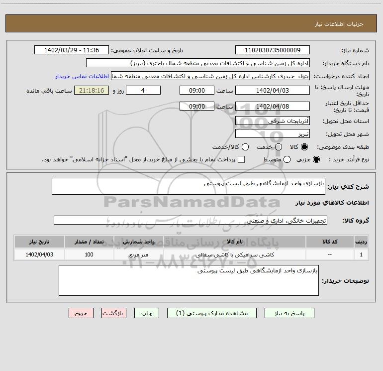 توضیحات خریدار:بازسازی واحد ازمایشگاهی طبق لیست پیوستی