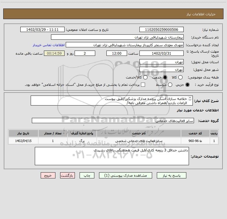 شرح کلی نیاز: خلاصه سازی اسکن پرونده مدارک پزشکی/طبق پیوست