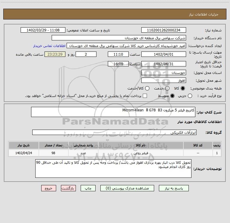 شرح کلی نیاز: کاتریج فیلتر 5 میکرون Microm-Klean lll G78 B3