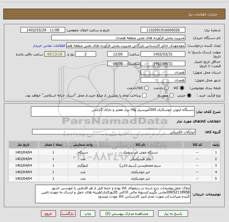شرح کلی نیاز: دستگاه اینورتر جوشکاری 300آمپرسیار mig برند معتبر و دارای گارانتی