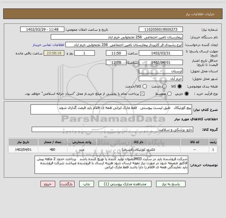 شرح کلی نیاز: پیچ کورتیکال طبق لیست پیوستی فقط مارک ایرانی همه ی اقلام باید قیمت گذاری شوند