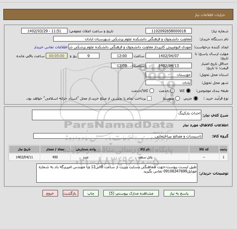 | 1 | -- | پانل سقف | عدد | 450 | 1402/04/11 |