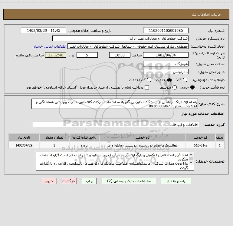 نام دستگاه خریدار:شرکت خطوط لوله و مخابرات نفت ایران