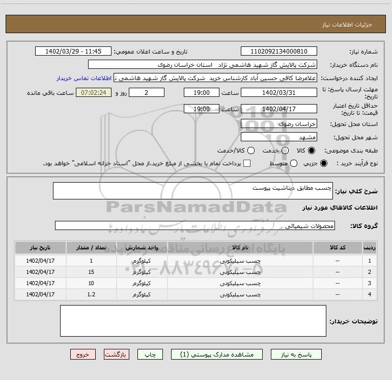 نام دستگاه خریدار:شرکت پالایش گاز شهید هاشمی نژاد استان خراسان رضوی