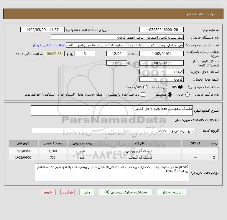 نام دستگاه خریدار:بیمارستان تامین اجتماعی پیامبر اعظم کرمان