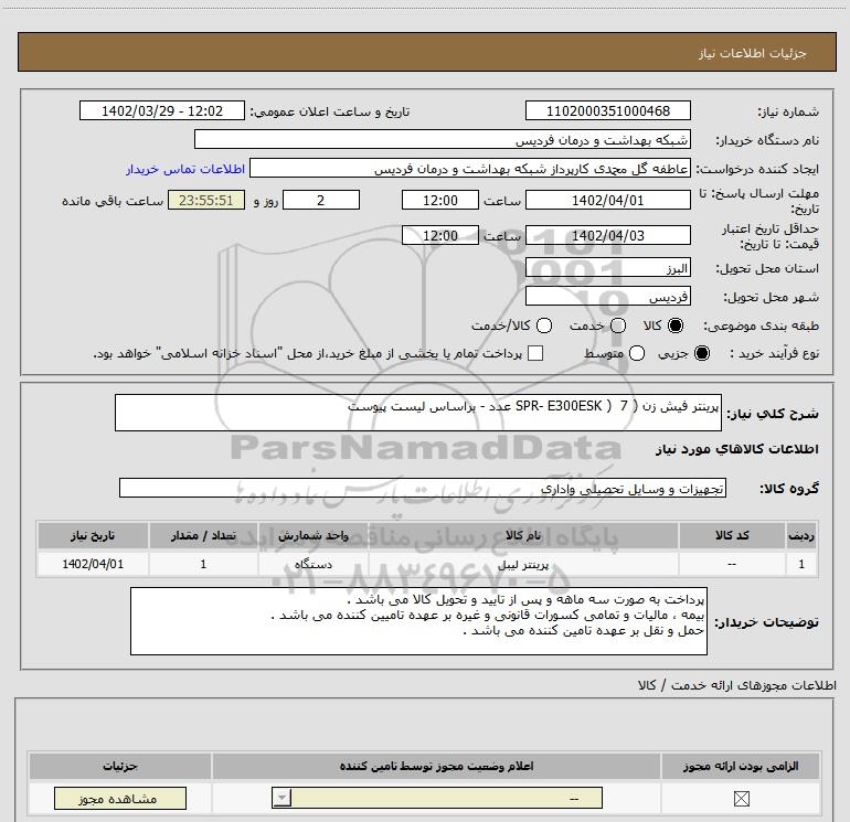 استعلام پرینتر فیش زن ( SPR- E300ESK ) 7 عدد - براساس لیست پیوست, استعلام پرینتر فیش زن ( SPR- E300ESK ) 7 عدد - براساس لیست پیوست