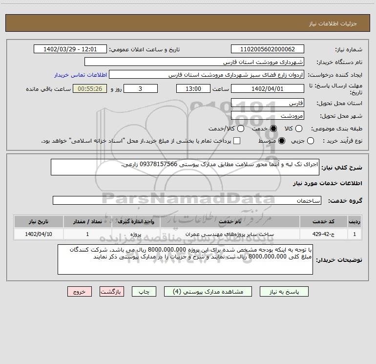 شرح کلی نیاز: اجرای تک لبه و آبنما محور سلامت مطابق مدارک پیوستی 09378157566 زارعی.