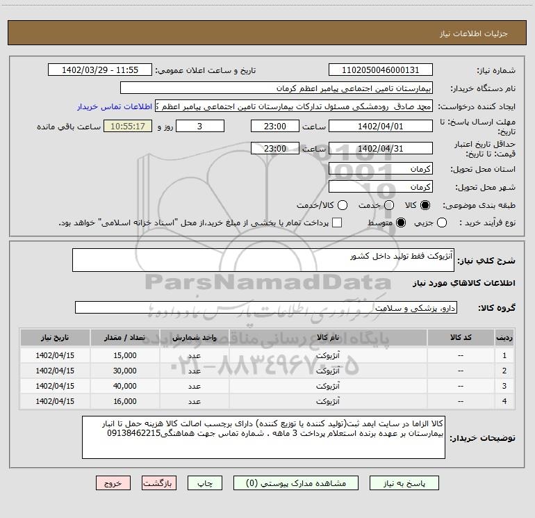 | 3 | -- | آنژیوکت | عدد | 40,000 | 1402/04/15 |