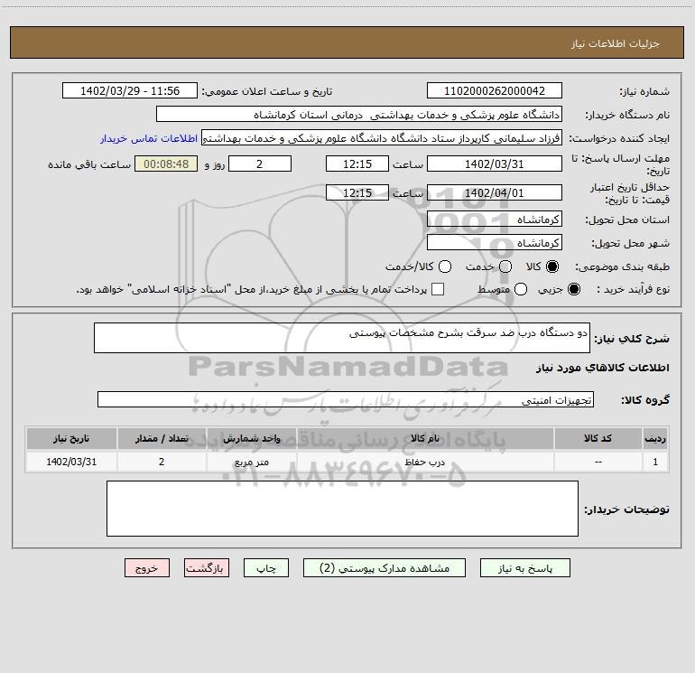 نام دستگاه خریدار:دانشگاه علوم پزشکی و خدمات بهداشتی درمانی استان کرمانشاه