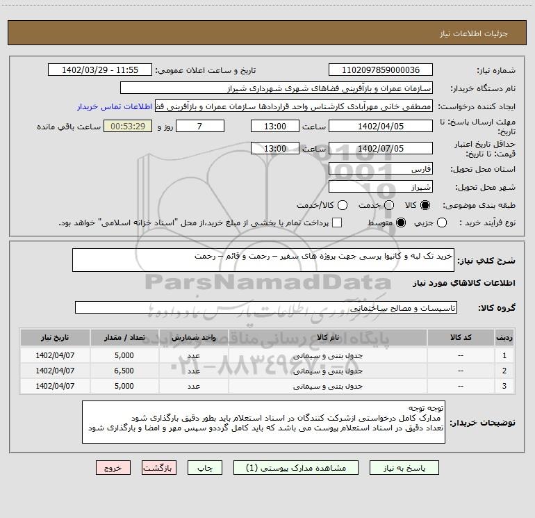نام دستگاه خریدار:سازمان عمران و بازآفرینی فضاهای شهری شهرداری شیراز