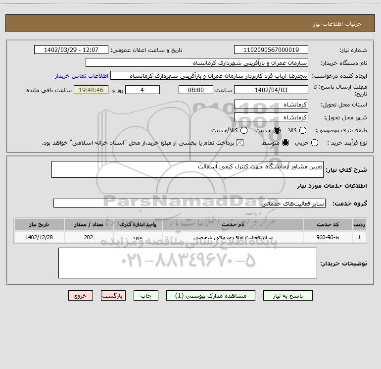 نام دستگاه خریدار:سازمان عمران و بازآفرینی شهرداری کرمانشاه