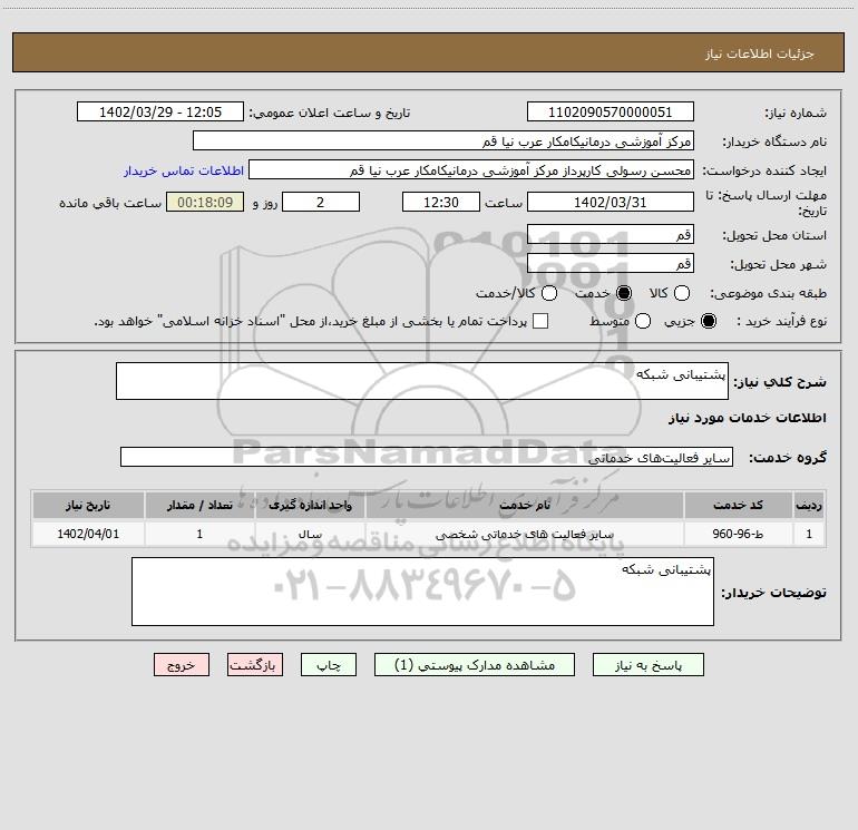 شرح کلی نیاز: پشتیبانی شبکه