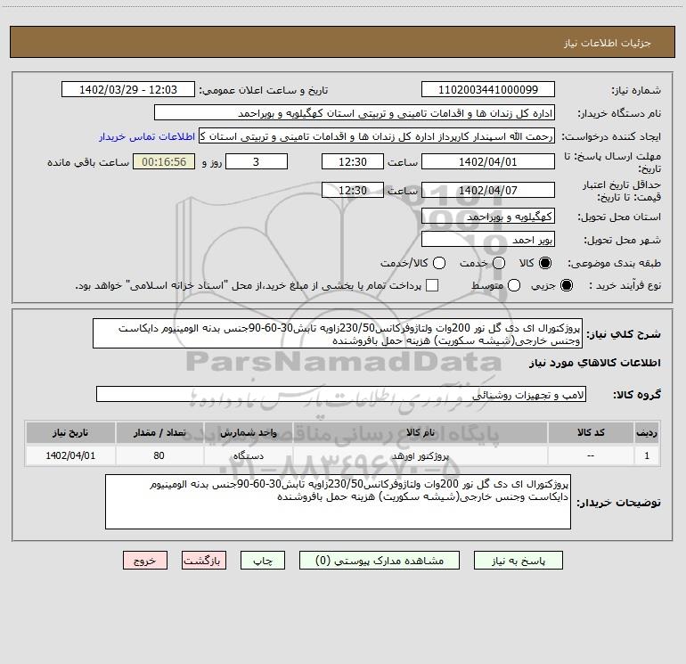 نام دستگاه خریدار:اداره کل زندان ها و اقدامات تامینی و تربیتی استان کهگیلویه و بویراحمد