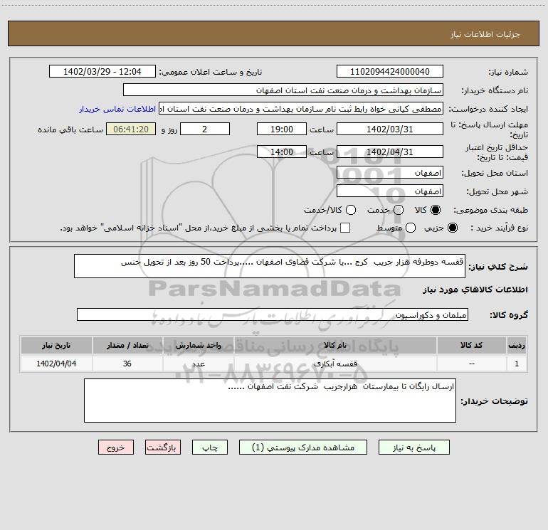 نام دستگاه خریدار:سازمان بهداشت و درمان صنعت نفت استان اصفهان
