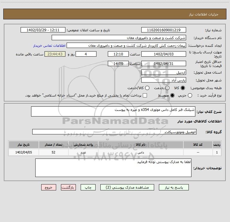 نام دستگاه خریدار:شرکت کشت و صنعت و دامپروری مغان