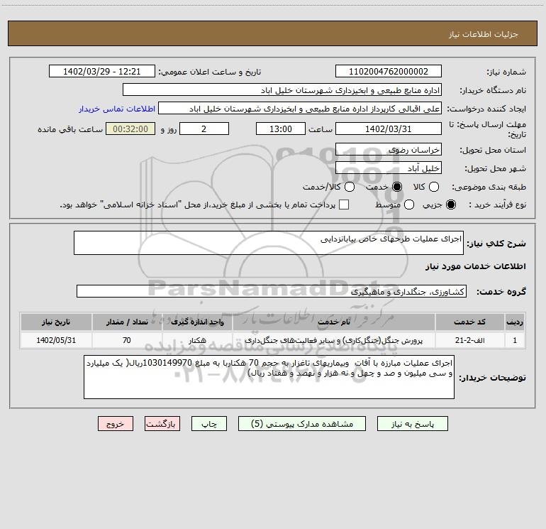 نام دستگاه خریدار:اداره منابع طبیعی و ابخیزداری شهرستان خلیل اباد