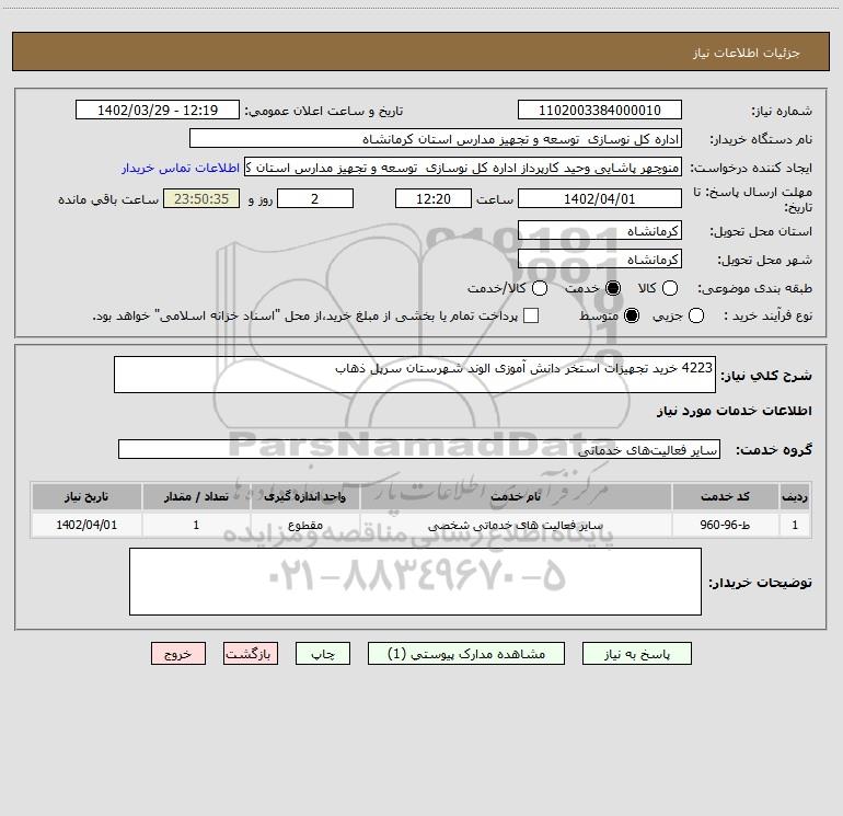 نام دستگاه خریدار:اداره کل نوسازی توسعه و تجهیز مدارس استان کرمانشاه