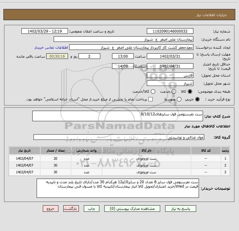 استعلام ست نفرستومی فول سایزهای8/10/12, استعلام ست نفرستومی فول سایزهای8/10/12