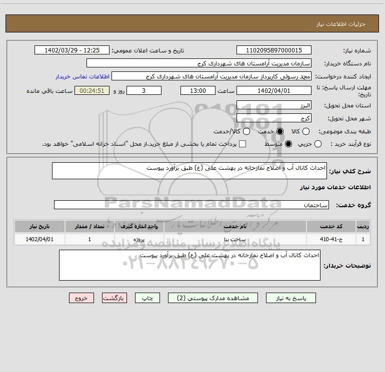 نام دستگاه خریدار:سازمان مدیریت آرامستان های شهرداری کرج