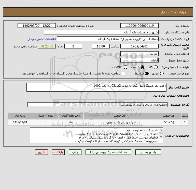 نام دستگاه خریدار:شهرداری منطقه یک آبادان