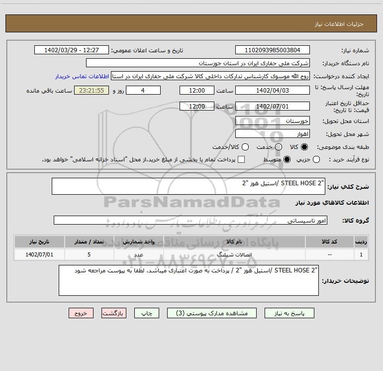 استعلام "STEEL HOSE 2 /استیل هوز "2, استعلام "STEEL HOSE 2 /استیل هوز "2