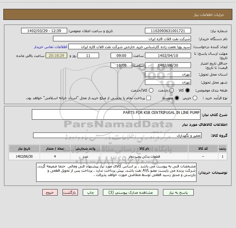 شرح کلی نیاز: PARTS FOR KSB CENTRIFUGAL IN LINE PUMP
