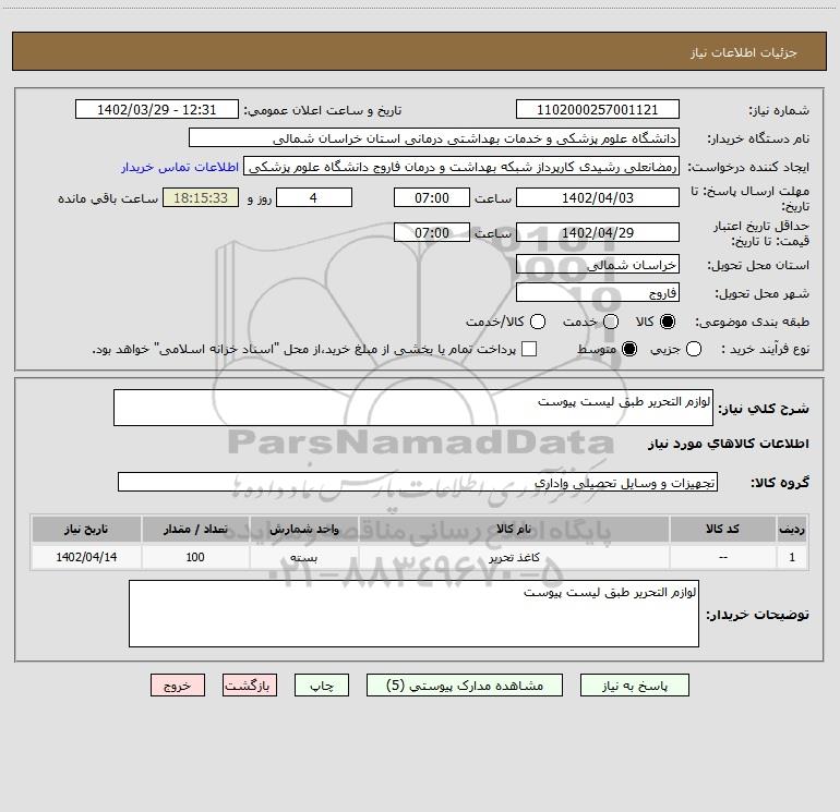 شرح کلی نیاز: لوازم التحریر طبق لیست پیوست