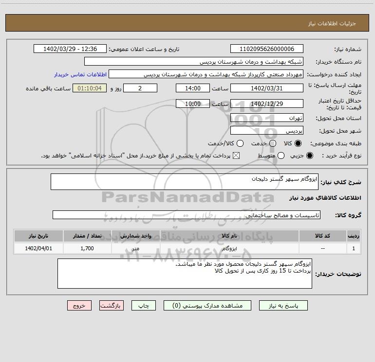 | 1 | -- | ایزوگام | متر | 1,700 | 1402/04/01 |