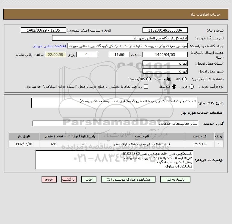 نام دستگاه خریدار:اداره کل فرودگاه بین المللی مهراباد