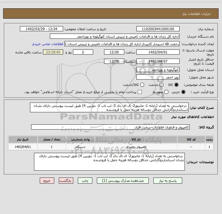 نام دستگاه خریدار:اداره کل زندان ها و اقدامات تامینی و تربیتی استان کهگیلویه و بویراحمد