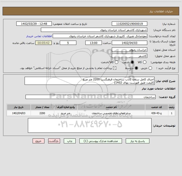 استعلام اجرای کامل سقف کاذب ساختمان فرهنگسرا 2200 متر مربع (قیمت طبق فهرست بهای 1402), استعلام اجرای کامل سقف کاذب ساختمان فرهنگسرا 2200 متر مربع (قیمت طبق فهرست بهای 1402)