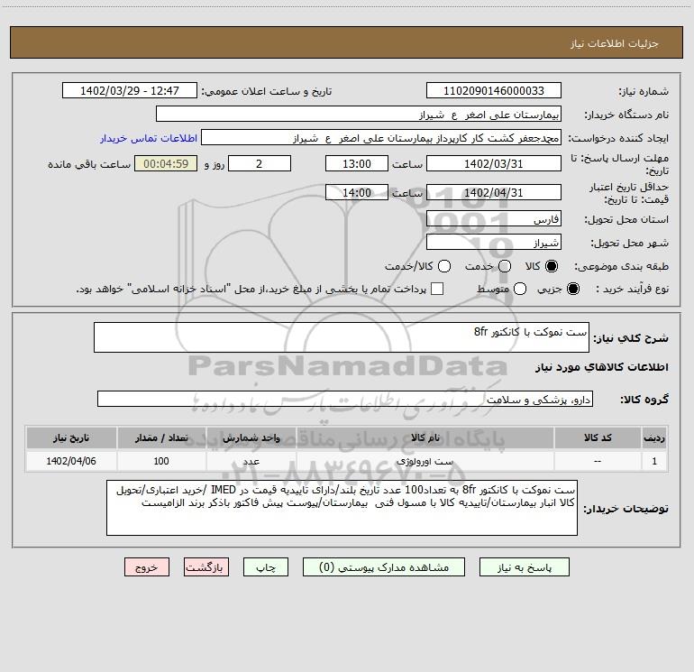 شرح کلی نیاز: ست نموکت با کانکتور 8fr