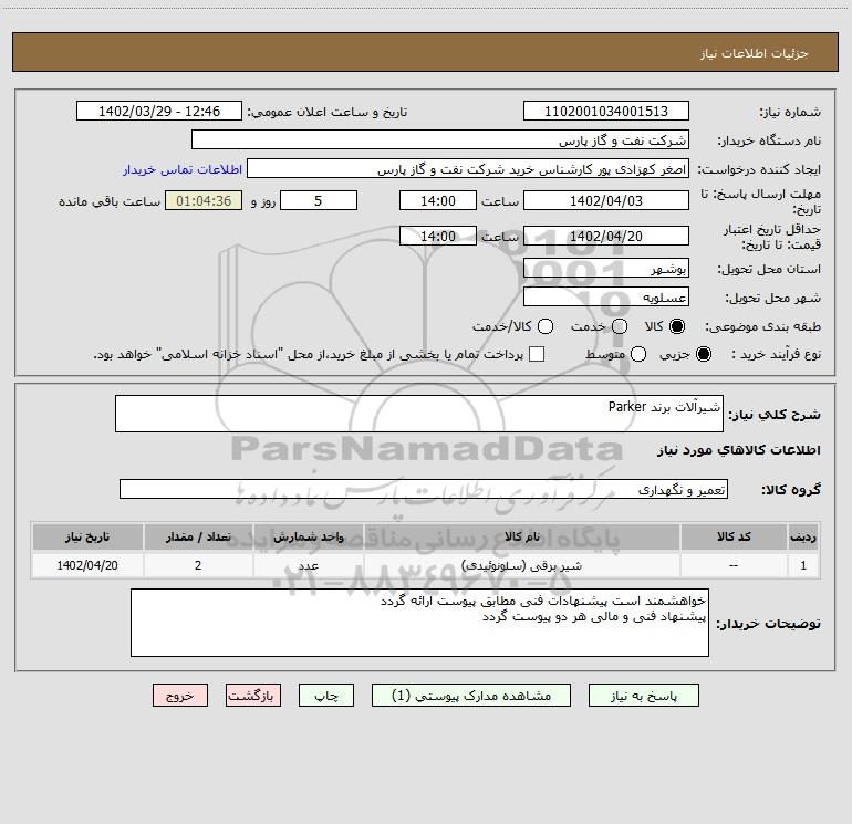 نام دستگاه خریدار:شرکت نفت و گاز پارس