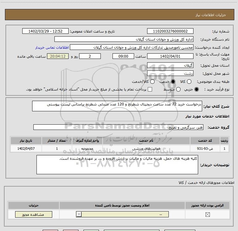 شرح کلی نیاز: درخواست خرید 72 عدد ساعت دیجیتال شطرنج و 120 عدد صندلی شطرنج براساس لیست پیوستی