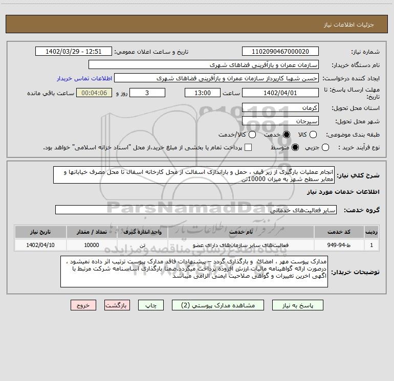 شرح کلی نیاز: انجام عملیات بارگیری از زیر قیف ، حمل و باراندازی اسفالت از محل کارخانه اسفال تا محل مصرف خیابانها و معابر سطح شهر به میزان 10000تن