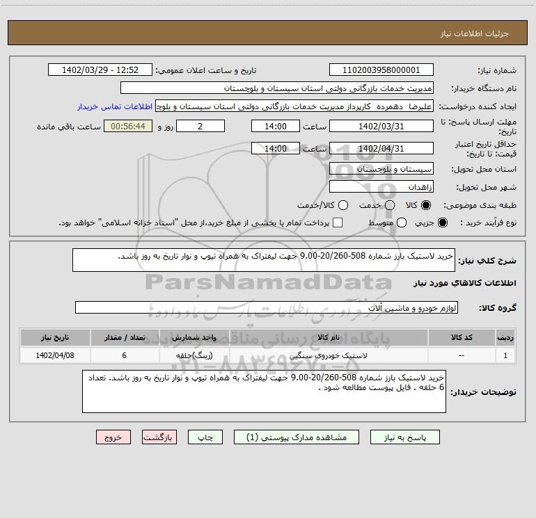 نام دستگاه خریدار:مدیریت خدمات بازرگانی دولتی استان سیستان و بلوچستان