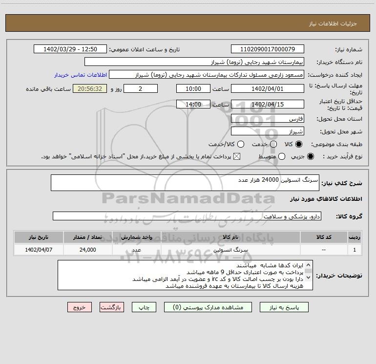 شرح کلی نیاز: سرنگ انسولین 24000 هزار عدد
