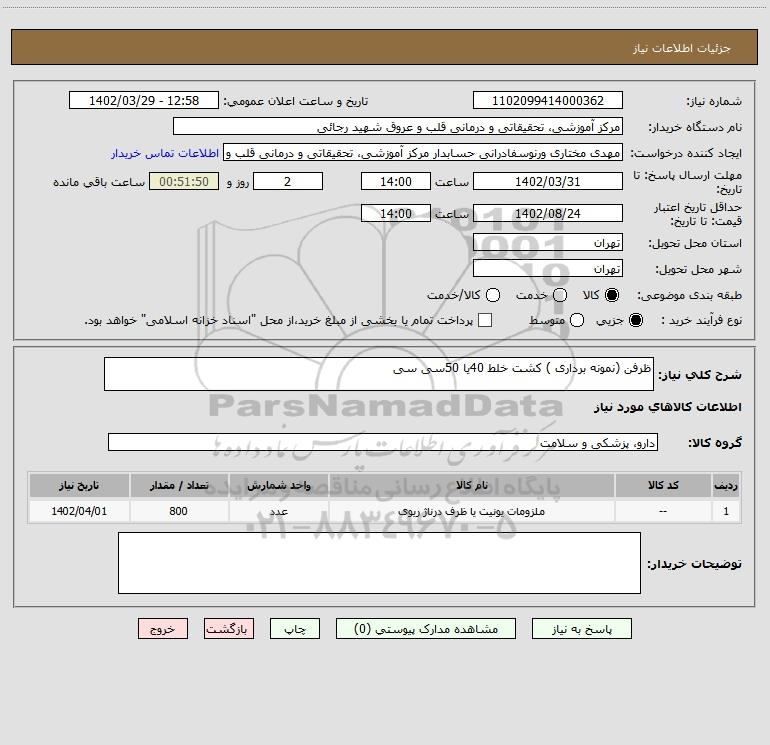 شرح کلی نیاز: ظرفن (نمونه برداری ) کشت خلط 40یا 50سی سی