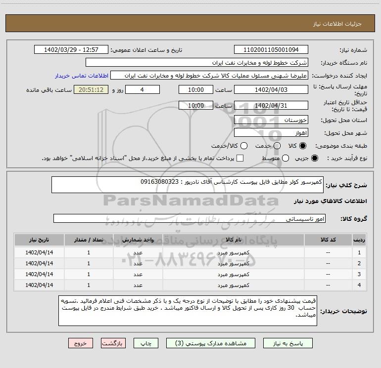 نام دستگاه خریدار:شرکت خطوط لوله و مخابرات نفت ایران