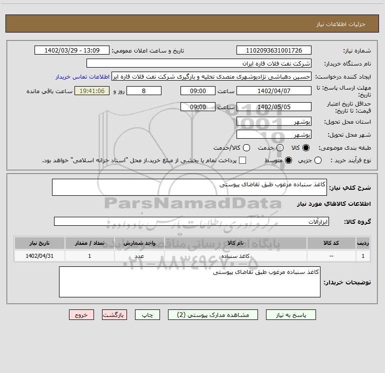 نام دستگاه خریدار:شرکت نفت فلات قاره ایران