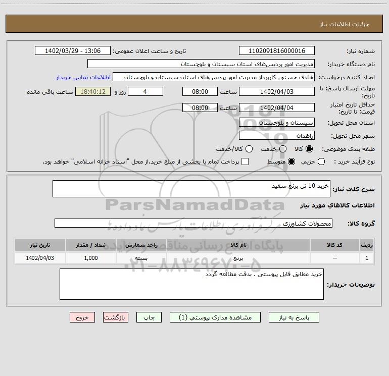 شرح کلی نیاز: خرید 10 تن برنج سفید