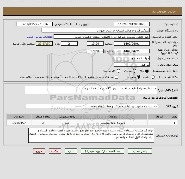 نام دستگاه خریدار:شرکت آب و فاضلاب استان خراسان جنوبی