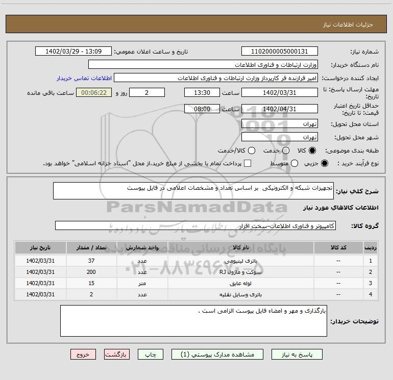 نام دستگاه خریدار:وزارت ارتباطات و فناوری اطلاعات